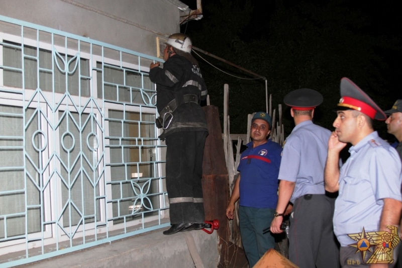 Օգնության են հասել փրկարարները July 12, 2013 8:06 Հուլիսի 11-ին, ժամը 16.03-ին ահազանգ է ստացվել, որ Երևանի Խաղաղ Դոնի փողոցի թիվ 23 շենքի 7-րդ հարկի պատշգամբի երկաթյա կառուցատարրին կանգնած է քաղաքացի, առկա է ընկնելու վտանգ. անհրաժեշտ է փրկարարների օ ...