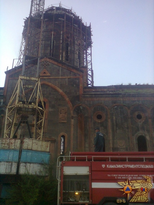 Հրդեհ Գյումրի քաղաքում June 24, 2013 21:22 Հունիսի 24-ին, ժամը 18.41-ին ահազանգ է ստացվել, որ հրդեհ է բռնկվել Գյումրի քաղաքի «Ամենափրկիչ» եկեղեցում: Դեպքի վայր են մեկնել երկու մարտական հաշվարկ և ջրատար: Հրդե ...