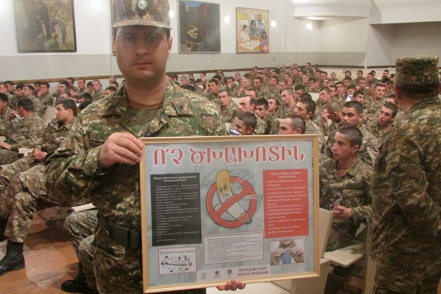 ՀՀ զորամասերում անցկացվում է «Առողջ զինվոր` առանց ծխախոտի» ծրագիրը April 30, 2014 18:35 Սյունիքի, Վայոց ձորի, Արարատի, Տավուշի, Գեղարքունիքի մարզերի և ՀՀ ՊՆ շուրջ 10 զորամասերում անցկացվում է «Առողջ զինվոր` առանց ծխախոտի» եռամսյա ծրագիրը: Ծրագիրն իրականացնում է «Զարգացման ծրագրերի հայկ ...