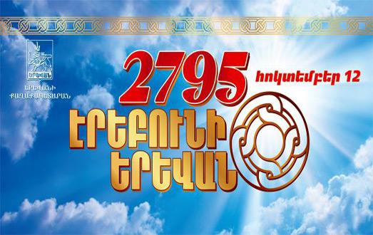 <<էրեբունի-Երևան 2795>> տոնակատարության միջոցառումների ժամանակացույց October 12, 2013 14:18 10.00 Ջրցան մեքենաների շքերթ Երևանի փողոցներով 10.30 Երևան ԱՐՏ (Սարյան պուրակ) 11.00 Երևան քաղաքի հուշարձանների լվացում 11.00 Քաղաքային տնտեսության էքսպո - ցուցահանդես <<Ավելի լավ Երևա ...