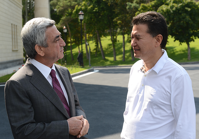 Նախագահ Սերժ Սարգսյանն ընդունել է ՖԻԴԵ-ի նախագահ Կիրսան Իլյումժինովին August 13, 2013 18:44 Հայաստանի Հանրապետության Նախագահ, Հայաստանի շախմատի ֆեդերացիայի նախագահ Սերժ Սարգսյանն այսօր ընդունել է Հայաստան ժամանած Շախմատի միջազգային ֆեդերացիայի նախագահ Կիրսան Իլյումժինովին: Զրուցակիցները հ ...