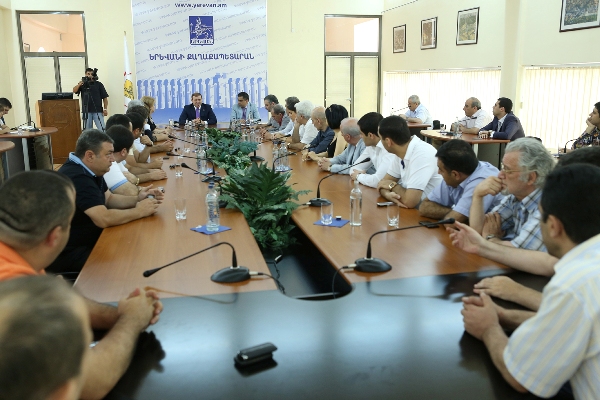 Քաղաքապետ Տարոն Մարգարյանը հանդիպել է Երևանի ավագանու ՀՀԿ, ԲՀԿ և «Բարև Երևան» խմբակցությունների անդամների հետ July 25, 2013 15:47 Մայրաքաղաքի տրանսպորտային ոլորտի հետ կապված հարցեր են քննարկվել քաղաքապետ Տարոն Մարգարյանի ու Երևանի ավագանու ՀՀԿ, ԲՀԿ և «Բարև Երևան» խմբակցությունների անդամների հանդիպման ժամանակ: Ներկայացնելով մ ...
