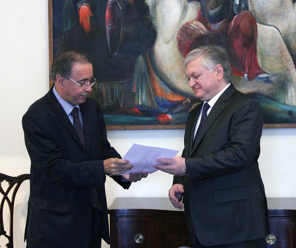Բրազիլիայի նորանշանակ դեսպանը հավատարմագրերի պատճենը հանձնեց Հայաստանի արտգործնախարարին July 5, 2013 6:45 Հուլիսի 4-ին արտգործնախարար Էդվարդ Նալբանդյանն ընդունեց Հայաստանում Բրազիլիայի նորանշանակ դեսպան Էդմոն Մարինյու Դուարտե Մոնտեյրուին՝ հավատարմագրերի պատճենի հանձնման կապակցությամբ: Շնորհավորելով դեսպա ...