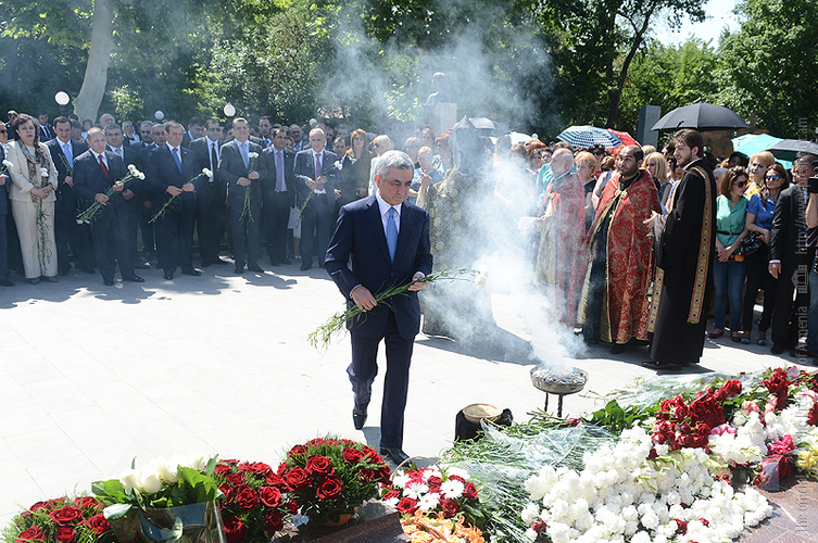 Սերժ Սարգսյանը հարգանքի տուրք է մատուցել պետական, քաղաքական գործիչ Անդրանիկ Մարգարյանի հիշատակին June 12, 2013 11:55 ՀՀ նախկին վարչապետ Անդրանիկ Մարգարյանի ծննդյան օրվա կապակցությամբ Նախագահ Սերժ Սարգսյանն այսօր երկրի բարձրագույն ղեկավարության ուղեկցությամբ այցելել է Կոմիտասի անվան այգու պանթեոն` հարգանքի տուրք մատո ...