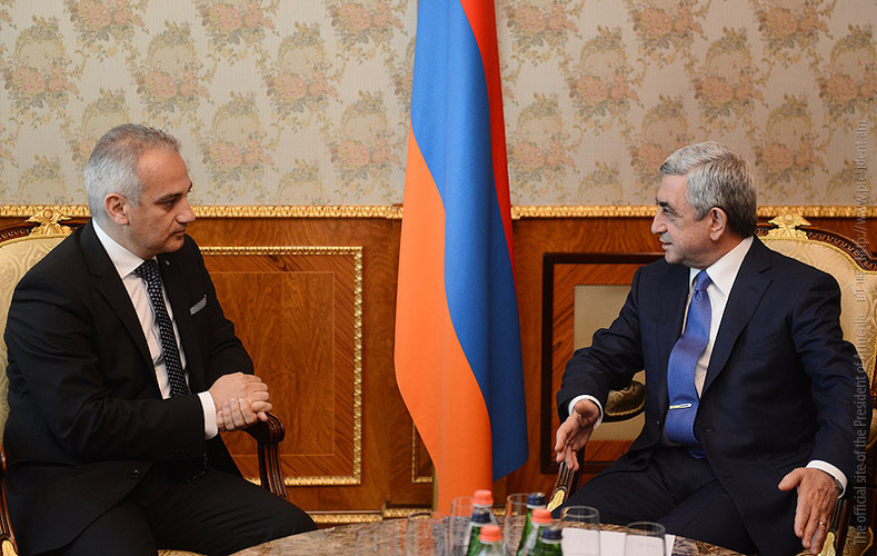 Նախագահ Սերժ Սարգսյանն ընդունել է ԵԱՀԿ Մինսկի խմբի համանախագահներին May 24, 2013 20:38 Նախագահ Սերժ Սարգսյանն այսօր ընդունել է ԵԱՀԿ Մինսկի խմբի համանախագահներ Իգոր Պոպովին (Ռուսաստան), Յան Կելլիին (ԱՄՆ), Ժակ Ֆորին (Ֆրանսիա) և ԵԱՀԿ գործող նախագահի անձնական ներկայացուցիչ Անջեյ Կասպրշիկին: ...
