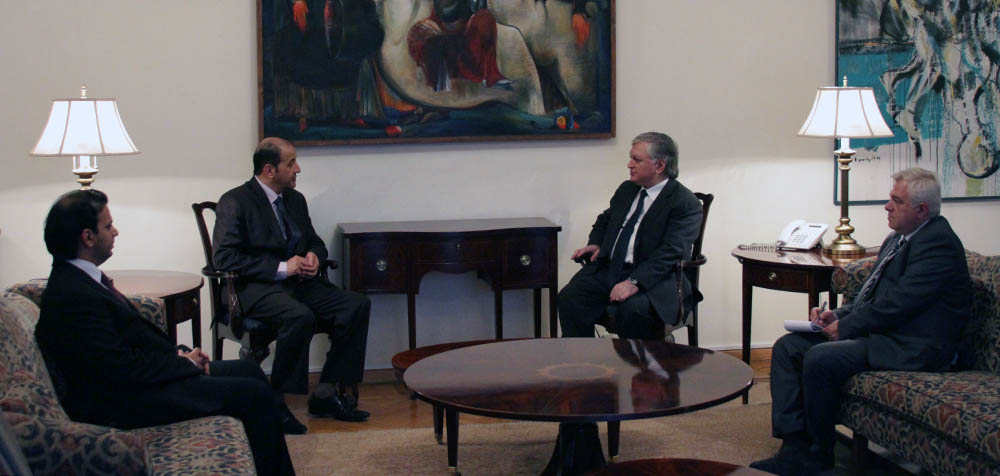 Արաբական միացյալ էմիրությունների նորանշանակ դեսպանն իր հավատարմագրերի պատճենը հանձնեց Հայաստանի արտգործնախարարին May 23, 2013 23:53 Մայիսի 23-ին Էդվարդ Նալբանդյանն ընդունեց Հայաստանում Միացյալ արաբական էմիրությունների նորանշանակ դեսպան Սայիֆ Մոհամմեդ Ալ Զաաբիին(նստավայրը՝ Թեհրան)` հավատարմագրերի պատճենի հանձնման կապակցությամբ: Շն ...