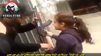 Լուսանկարում Լիբանանի ահաբեկչական կազմակերպության անդամները փոքրիկ աղջկան սովորեցնում են Կալաշնիկովի ինքնաձիգից օգտվել ու նրան թույլատրել են կրակել բանուկ փողոցի ուղղությամբ: