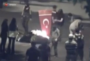 Ոստիկանության տեսախցիկները ֆիքսել են, թե Անկարայում ցուցարարների մի խումբ ինչպես է այրում անկախության խորհրդանիշ համարվող թուրքական դրոշն և այդ կապակցությամբ ուրախանում։