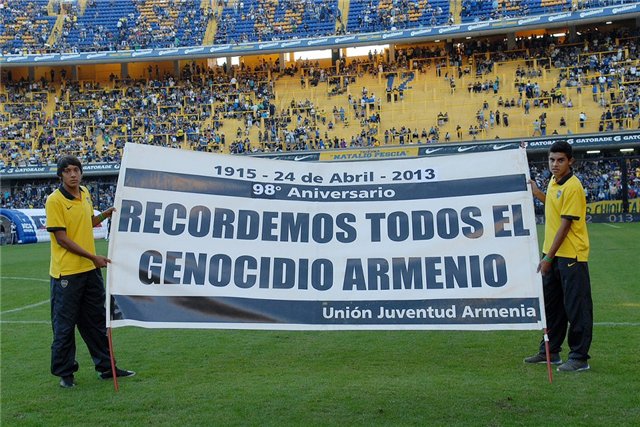 Արգենտինական «Բոկա Խունիոս» ֆուտբոլային ակումբն ազգային առաջնության հերթական տուրի խաղի մեկնարկից առաջ ցուցապաստառ է պարզել` նվիրված Հայոց ցեղասպանության զոհերի հիշատակին: