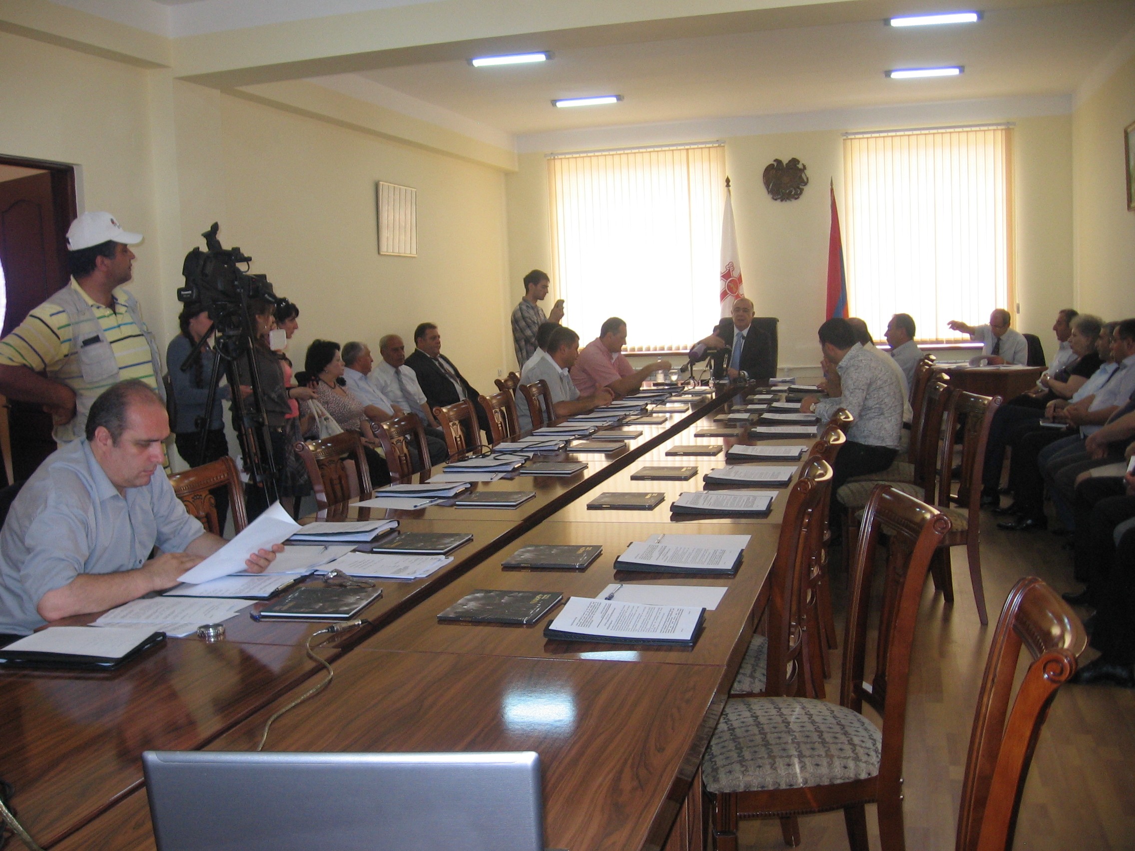 Հունիսի 18-ը Գյումրիի ավագանու հերթական նիստի օրն էր: Օրակարգում ընդգրկված էր 15 հիմնական, 5 լրացուցիչ հարցեր և երկու հայտարարություն: Նիստը նախատեսած էր ժամը 12:00-ին, սակայն ավագանու 21 անդամներից ներկա էր միայն 9-ը, և ըստ ՏԻՄ օրենքի, եթե ներկա են ավագանու հիմնական թվից կեսից պակաս անդամներ, ապա իրավունք կա նիստը հետաձգել 30 րոպեով, որից հետո, անդամների թիվը չավելանալու դեպքում` նիստը չեղյալ է համարվում: Գյումրիի քաղաքաետն այդպես էլ վարվեց, և 30 րոպե հետո ավագանու անդամներն արդեն դահլիճում 11-ն էին ու քվորումն ապահովված էր: