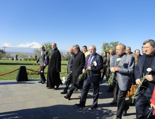 Այսօր` ապրիլի 24-ին, Հանրային խորհրդի անդամները, հանձնաժողովների ու ենթահանձնաժողովի նախագահներն ու անդամները ՀԽ նախագահ Վազգեն Մանուկյանի գլխավորությամբ այցելեցին Ծիծեռնակաբերդի հուշահամալիր` հարգանքի տուրք մատուցելու Ցեղասպանության անմեղ զոհերի հիշատակին: