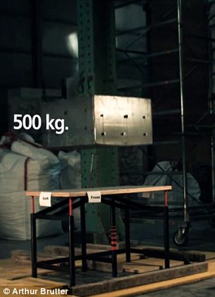 Սեղանը, որը կարող է դիմանալ վերևից ընկնող մինչև մեկ տոնա բեռին, ստեղծել են իսրայելցի գյուտարարներ Արթուր Բրաթերը և Իդո Բրունոն: