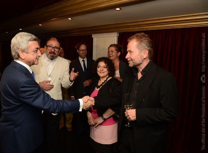 ՀՀ Նախագահ Սերժ Սարգսյանն այսօր երեկոյան հանդիպում է ունեցել «Ոսկե ծիրան» երևանյան միջազգային հոբելյանական 10-րդ կինոփառատոնի պատվավոր հյուրերի և Հայաստանից ու աշխարհի տարբեր երկրներից փառատոնին մասնակցող կինոգործիչների հետ: