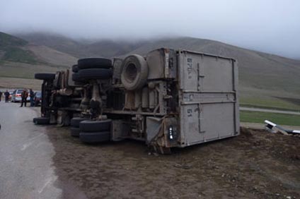Պարզվել է, որ դեռևս չբացահայտված հանգամանքներում «Իվեկո» մակնիշի 817OF64 պետհամարանիշի բեռնատար ավտոմեքենան դուրս է եկել ճանապարհի երթևեկելի մասից և կողաշրջվել: ՀՀ քաղաքացի, վարորդ՝ 1952թ. ծնված Գևորգ Կիրակոսյանը տեղում ստացել է համապատասխան բուժօգնություն: