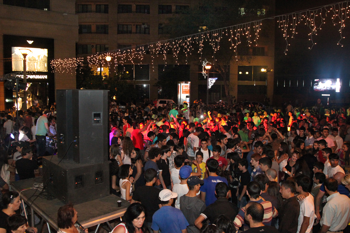 Երիտասարդության միջազգային օրը Երևանի քաղաքապետարանը դիսկոտեկ-միջոցառումներ էր կազմակերպել Շառլ Ազնավուրի անվան հրապարակում, Հյուսիսային պողոտայում, Կասկադում, Սիրահարների այգում։ Երեկոյան հազարավոր երիտասարդներ են մասնակցել Երևանի հայտնի դիջեյների դիսկոտեկներին, որոնք, մասնակիցների խոսքով, մեծ աշխուժությամբ են լցրել ամառային քաղաքը։