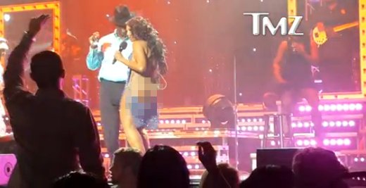Նա իր շոուն ավարտել է իր մերկ մարմնի վրա միայն երկրպագուներից մեկի բաճկոնը կրելով: