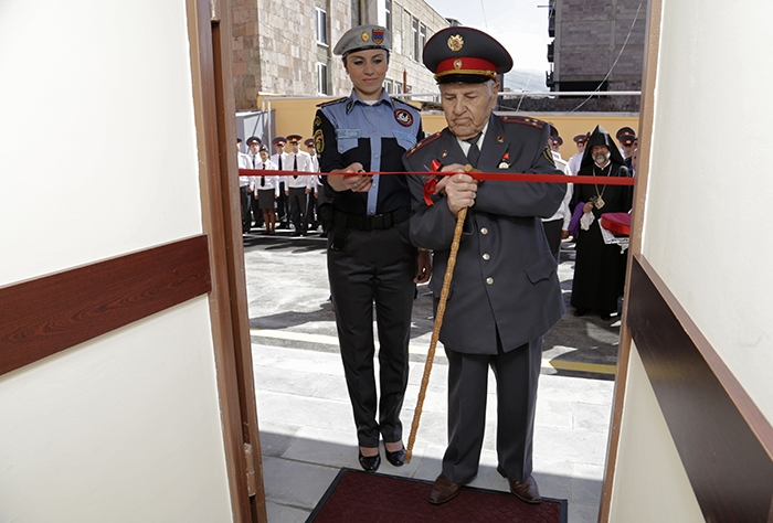 Բացման արարողությունը կատարեցին բաժնի վետերաններից մեկն ու պարեկապահակետային ծառայության հատուկ գումարտակի երիտասարդ ծառայողները: