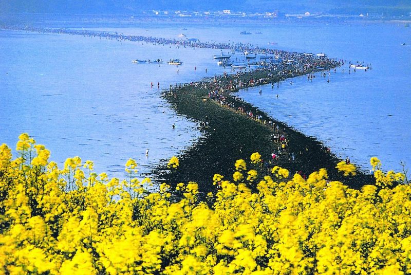 Աստվածաշնչից հայտնի դրվագը հիշեցնող տեսարանը, ինչպես ժամանակակից մասնագետներն են ասում, լրիվ հնարավոր է: Դրա համար միայն պետք է, որ տեղատվությունն ուղեկցվի ուժեղ քամով: Չինդյո կղզու մոտ կատարվող երևույթն իսկական հրաշք կարելի է համարել: Տարեկան 2 անգամ` փետրվարին ու հունիսին, ջուրը ճեղքվում է մեկ ժամով ու ծովի հատակը անցուղու վերածում: Այդ ստորջրյա կամուրջը, որի երկարությունը 3 կմ է, իսկ առավելագույն լայնությունը` 40 մ, միացնում է արշիպելագի 2 կղզիները: Այդ մեկ ժամում, երբ օվկիանոսը նահանջում է, տասնյակ հազարավոր մարդիկ փոքրիկ ուխտագնացություն են կատարում: Մի հետաքրքիր առանձնահատկություն էլ կա. արևելքի մշակույթում կորեացիներին ընդունում են այնպես, ինչպես Եվրոպայում հրեաներին: