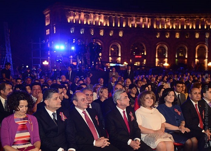 Նախագահ Սերժ Սարգսյանը ներկա է գտնվել ՀՀ անկախության 22-րդ տարեդարձին նվիրված տոնական համերգին September 21, 2013 22:06 | Լրահոս,Հայաստան,Պաշտոնական | 430 Նախագահ Սերժ Սարգսյանը և տիկին Ռիտա Սարգսյանն այսօր մայրաքաղաքի Հանրապետության հրապարակում ներկա են գտնվել Հայաստանի Հանրապետության անկախության 22-րդ տարեդարձին նվիրված տոնական համերգին: By ankakh Tags: Սերժ Սարգսյան