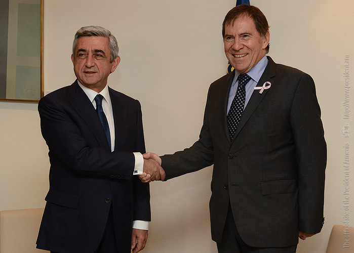 Աշխատանքային այցով Ֆրանսիայի Հանրապետությունում գտնվող Նախագահ Սերժ Սարգսյանն այսօր Ստրասբուրգում հանդիպումներ է ունեցել Եվրոպայի խորհրդի խորհրդարանական վեհաժողովի (ԵԽԽՎ) նախագահ Ժան-Կլոդ Մինյոնի, ԵԽ գլխավոր քարտուղար Թորբյորն Յագլանդի և ԵԽ մարդու իրավունքների հանձնակատար Նիլս Մուիժնիկսի հետ: ԵԽ գլխավոր քարտուղար Թորբյորն Յագլանդի հետ հանդիպման ավարտին Հայաստանի Նախագահը և ԵԽ գլխավոր քարտուղարը հանդես են եկել բանակցությունների արդյունքներն ամփոփող հայտարարություններով և պատասխանել զանգվածային լրատվամիջոցների ներկայացուցիչների հարցերին: