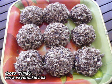 Պատրաստի գնդերը պետք է թողնել, որ հովանան, ապա թաթախել գլազուրի մեջ, իսկ հետո վաֆլու քերուկի մեջ գլորել:
