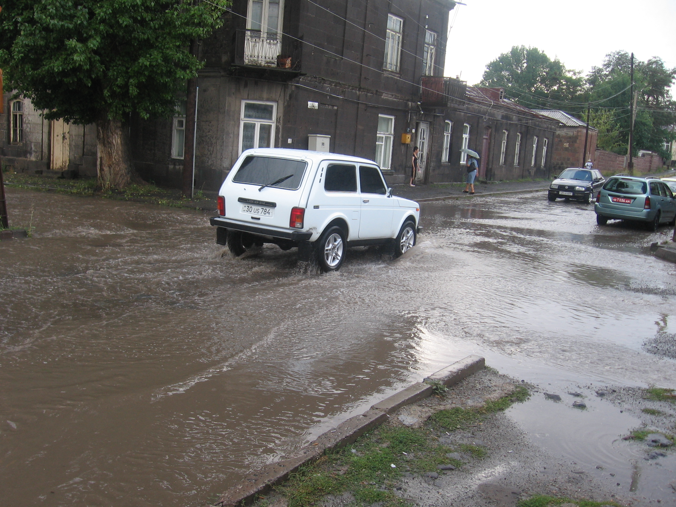 Գյումրին գրեթե չունի կոյուղային համակարգ, իսկ սելավատարներ ոչ բոլոր փողոցներում կան, արդյունքում, ջուրը լճանում է փողոցում, ներծծվում ասֆալտաշերտի մեջ, եթե կա, և թուլացնում այն: