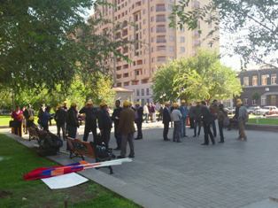 Շուկայի մոտ այս պահին հավաքվել են պատգամավորին սատարող ակցիաների մշտական մասնակիցները եւ ոստիկաններ, որոնք սպասում են ակտիվիստներին։ Շուկայի մոտ է նաեւ Երեւանի փոխոստիկանապետ Վալերի Օսիպյանը։