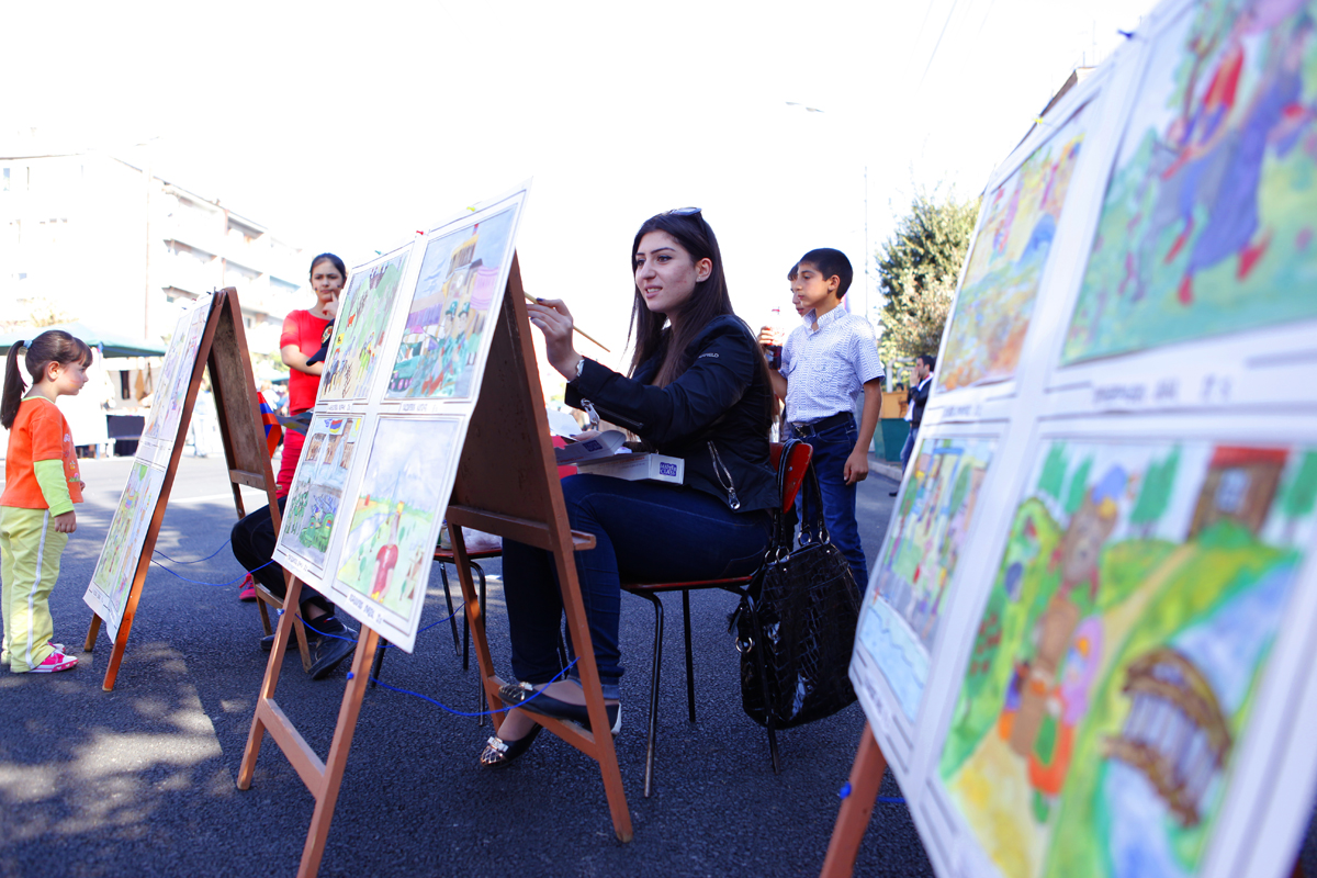 Փողոցի երկայնքով՝ 70 գույնզգույն տաղավարներում բազմազան տոնավաճառ էր. Երևանում գործող արվեստի քոլեջների, դպրոցների, ինչպես նաև արհեստագործական ուսումնական հաստատությունների սաների ձեռագործ աշխատանքներն էին ցուցադրվում. տոնակատարությանը մասնակից քաղաքացիները դրանք գնելու հնարավորություն էլ ունեին։ Պատանի ստեղծագործողները, ասում են, ուրախությամբ են ընդունել տոնակատարությանը մասնակցելու առաջարկը, քանի որ, նրանց խոսքով, իրենք այդպիսով մեկտեղում են տոնին մասնակցելու և իրենց ստեղծագործությունները ցուցադրելու հանրավորությունները։ Ավագ սերնդի ներկայացուցիչ մասնակիցները, հիշելով առաջին Էրեբունի Երևան տոնակատարությունները նշել են, որ այսօր իրենք մասնակցում են մի նորօրյա տոնի, որ, վերափոխվելով հանդերձ, պահպանել է տասնամյակների ոգին և գնալով ավելի սիրված ու մասսայական է դառնում։