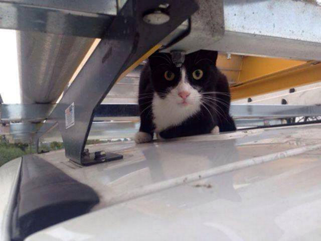 Մեծ Բրիտանիայում կատուն ավտոմեքենայի կտուրին երթևեկել է 35կմ, 100 կմ/ժամ արագությամբ: Խեղճ կատվին կարելի է համարել կասկադյոր` նա հրաշքով չի ընկել: Ֆուրգոնի վարորդը` Հելեն Ստիվենսը, չի պատկերացրել, որ չորքոտնի ուղևոր է տեղափոխում: