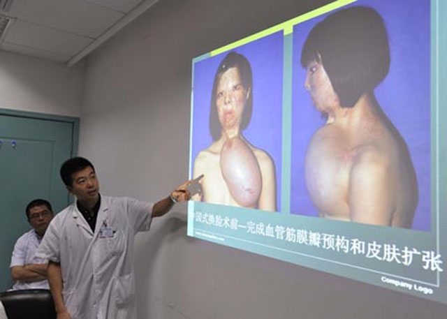 Հերթական ցնցող պլաստիկ վիրահատությունն է իրականացվել Չինաստանում: Վաղ հասակում աղջկա` այրվածքներից չափազանց տուժած դեմքը փոխպատվաստել են` նախապես այն աճեցնելով հիվանդի կրծքին: Բժիշկներն ասել են, որ 17-ամյա չինուհին կսովորի օգտագործել իր նոր դեմքը , հաղորդում է Want China Times-ը: