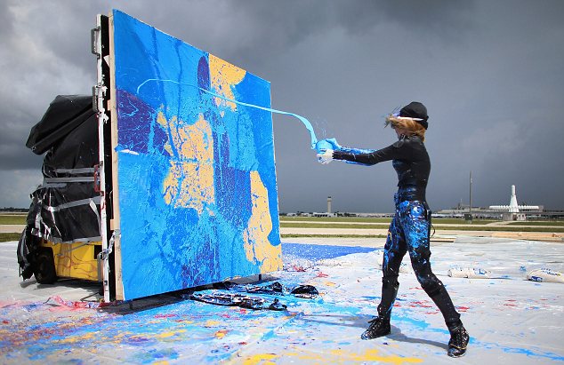 Ֆլորիդայի Մայամի քաղաքի բնակիչը կանգնում է 11 միլիոն դոլար արժողությամբ մասնավոր ինքնաթիռի գործի գցված շարժիչի հետևում և ներկը նետում օդ, որը, շարժիչից արտադրված քամու ազդեցության տակ տարբեր ձևեր ընդունելով, շիթերով թափվում է կտավի վրա: