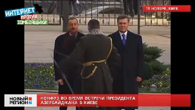 Ինչպես հաղորդում է ադրբեջանական “Կոնտակտ” կայքը, պատվո պահակախմբի ղեկավարը երկու երկրների ղեկավարներին ողջունելիս սրով հարվածել է իր գլխարկին, որը ընկել է գլխից: Զինվորականը չի կորցրել իրեն և սրի պատյանով բռնել է գլխարկը: Վերջինս այդ ամենը այնքան հմտորեն է արել, որ Իլհամ Ալիևը անգամ չի էլ նկատել այդ ամենը: Մինչդեռ դա չի վրիպել Յանուկովիչի աչքից: Նայելով, թե զինվորականը ինչ հմուտ կերպով է բռնում գլխարկը, Ուկրաինային նախագահը նախ զարմացել է, ապա ժպտացել: