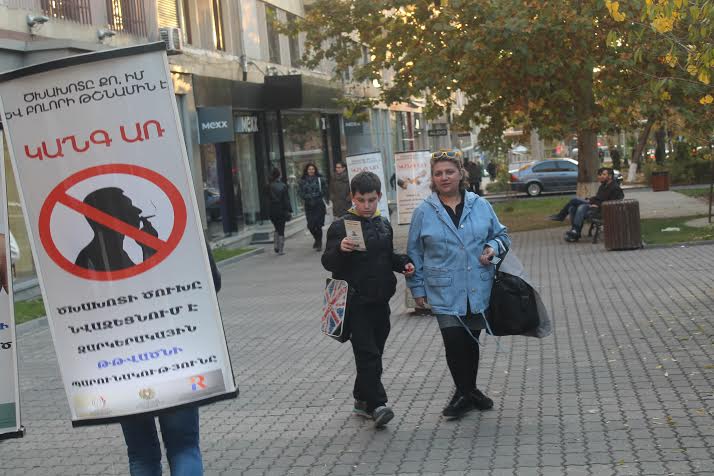 «Ծխախոտը քո, իմ և բոլորի թշնամին է» ակցիայի շրջանակներում Երևանի փողոցներում արդեն երկու շաբաթ է երիտասարդները վահանակներով շրջում են փողոցներում, մոտենում անցորդներին և նրանց բաժանում ծխախոտի վնասակարության մասին պատմող թռուցիկներ: