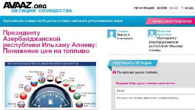 Ադրբեջանում դեկտեմբերի 3-ից ինտերնետում օն-լայն ֆորմատով նախագահ Իլհամ Ալիևին ուղղված միջնորդագիր է տեղադրվել`ի նշան բենզինի գնի թանկացման դեմ բողոքի: