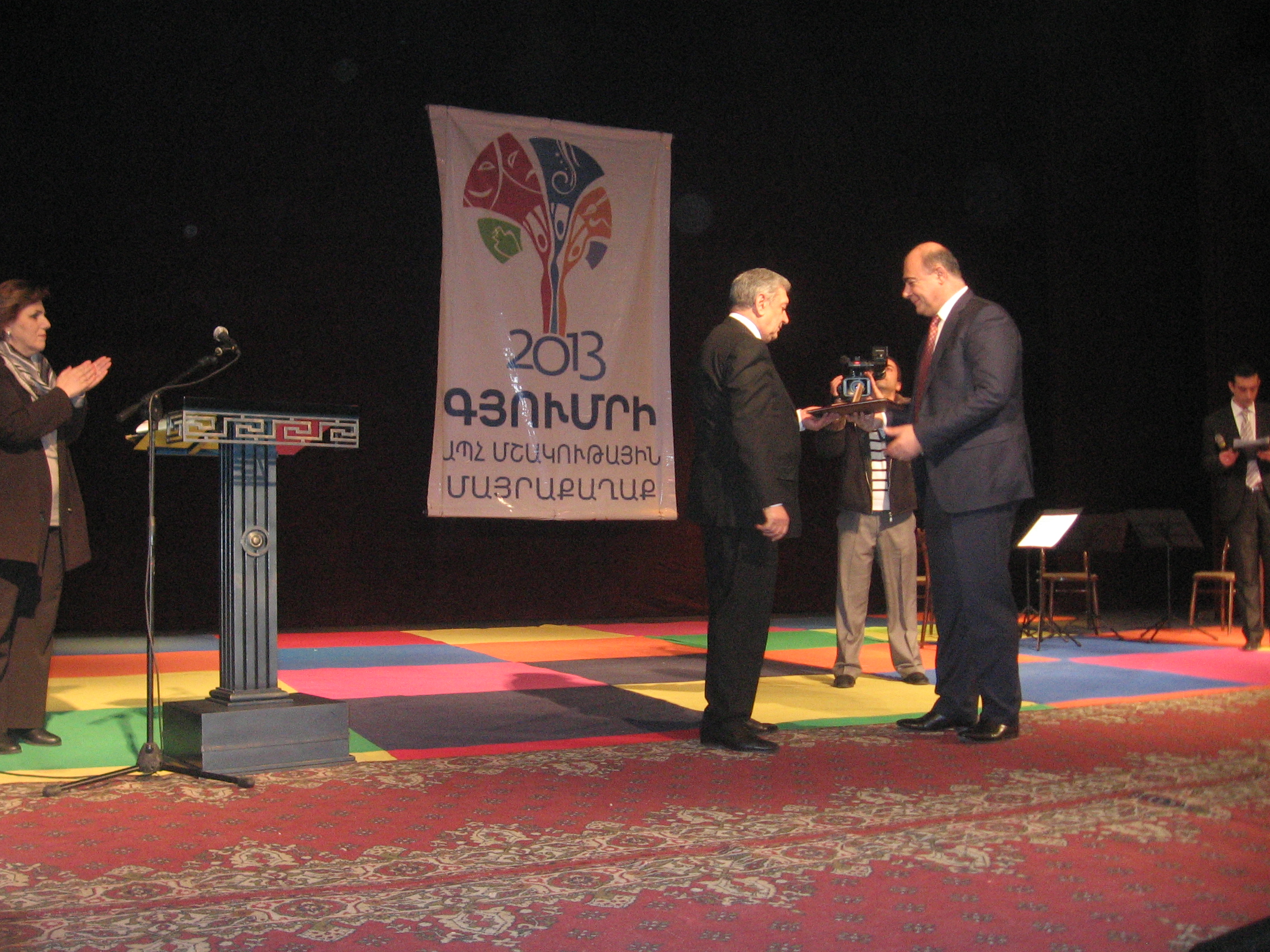 Պաշտոնյաների ելույթներին հաջորդում էր նաև մշակութային մայրաքաղաքի անցկացմանն աջակցած բոլոր անհատներն ու կազմակերպությունների ղեկավարների պարգևատրումները: Շիրակի մարզպետարանի հուշամեդալով պարգևատրվեցին Հասմիկ Պողոսյանն ու Սամվել Բալասանյանը: Եղան նաև փոխադարձ պարգևատրումներ, իսկ քաղաքապետը մեկ առ մեկ պարգևատրեց նաև հասարակ աշխատակիցների` բանվորների, վարորդների, որոնց շնորհիվ ամբողջ տոնական տարվա ընթացքում ապահովվել էր Գյումրու մաքրությունը: