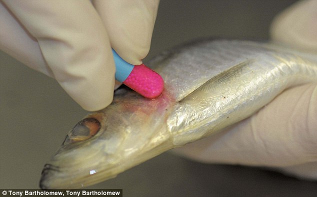 Սկարբորոյի ծովային կենտրոնի կենդանիների պաշտպան թիմը հաբերը դնում է սատկած ձկների մեջ՝ նախքան դրանցով պինգվիններին կերակրելը: