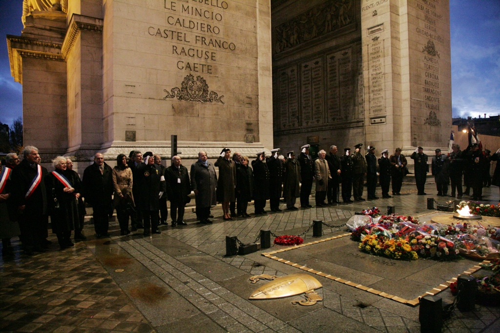 Ռազմական ակադեմիայում տեղի ունեցած միջոցառմանը հաջորդեց երեկոյան երթը դեպի Փարիզի Հաղթանակի կամար, որտեղ Ֆրանսիայի օրհներգի ներքո տեղի ունեցավ հավերժական կրակի բորբոքման արարողություն` ի նշան Մանուշյանի խմբի գնդակահարված անդամների հիշատակի: Հնչեցին հայերեն, եբրայերեն և ֆրանսերեն աղոթքներ: