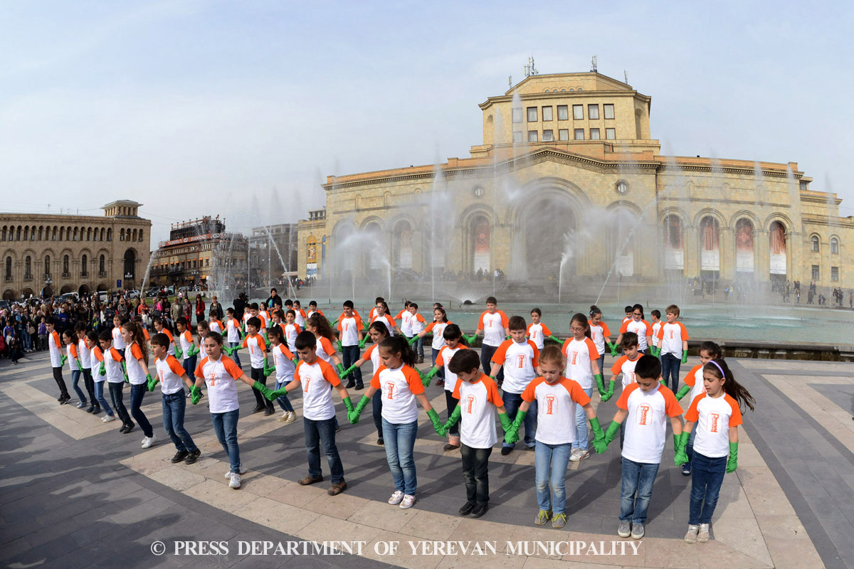Երգող շատրվանների գործարկումից, շնորհավորական բացիկներից ու վարդերից բացի, Հանրապետության հրապարակում հավաքված կանանց ու աղջիկներին ևս մեկ անակնկալ էր սպասվում: Ինքնատիպ ֆլեշմոբի միջոցով կանանց ու աղջիկներին շնորհավորել են նաև փոքրիկ երևանցիները: