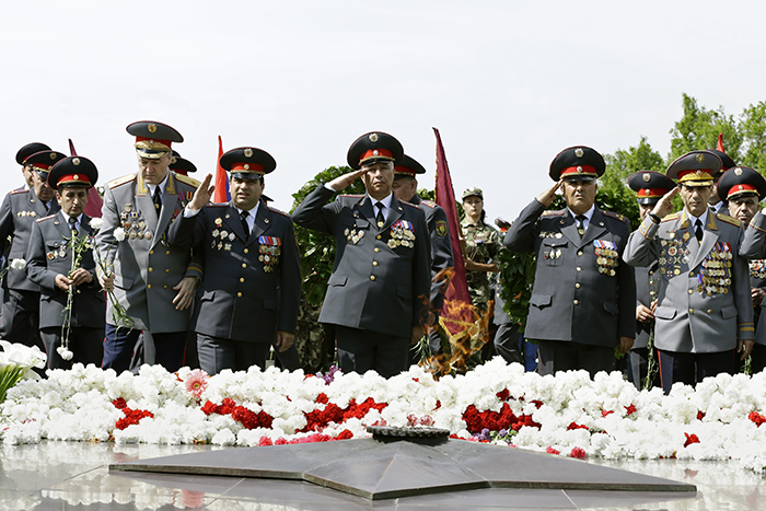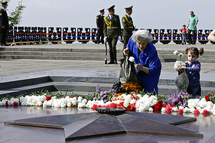 Ոստիկանության պատվիրակությունը Հաղթանակի այգում ծաղիկներ դրեց նաև Անհայտ զինվորի հուշահամալիրում` հարգանքի ու երախտիքի տուրք մատուցելով հարյուր հազարավոր հայորդիներին, որոնք Հայրենական մեծ պատերազմի դաժան մարտերում, ֆաշիզմի դեմ պայքարում գործած սխրանքով բերեցին Հաղթանակի և Խաղաղության օրը։ Այս տոնն ամենաթանկն է, որովհետև նվաճվել է մեր եղբայրների և քույրերի ինքնազոհության ու հերոսացման գնով և մեր ժողովրդի համար ապահովել խաղաղ ապրելու և արարելու լիարժեք հնարավորություն։ Շնորհավորում ենք Հաղթանակի և խաղաղության տոնի առթիվ` բոլորիս մաղթելով նորանոր հաղթանակներ` հանուն մեր հայրենիքի հարատևման, պետականության ամրապնդման և ժողովրդի բարօրության։