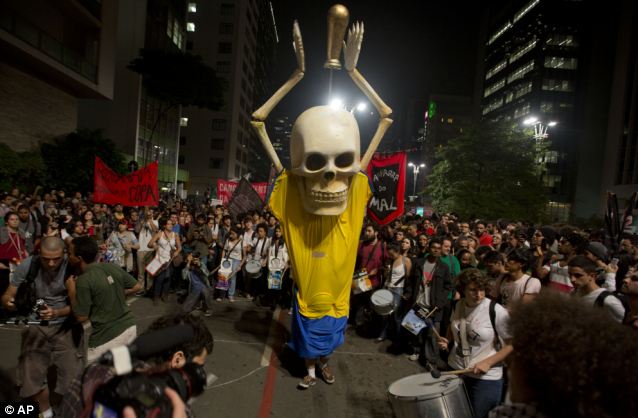 Ցուցարարները բողոքում են հաջորդ ամիս մեկնարկելիք ֆուտբոլի առաջնության կազմակերպման համար օգտագործված միլիարդավոր դոլարների դեմ և ուշադրություն են հրավիրել վատ որակի հանրային ծառայությունները բարելավելու համար տրամադրվող սուղ միջոցների վրա: