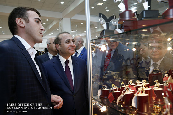 Կառավարության ղեկավարը ՀՀ էկոնոմիկայի նախարար Կարեն Ճշմարիտյանի և Հայաստանի ոսկերիչների միության նախագահ Էմիլ Գրիգորյանի ուղեկցությամբ շրջել է ցուցահանդես-վաճառքին մասնակցող ընկերությունների տաղավարներով, ծանոթացել նրանց արտադրանքին, գործունեությանը և առաջիկա ծրագրերին: