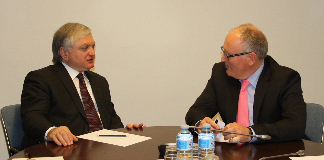 Էդվարդ Նալբանդյանն ու Ֆրանս Թիմմերմանսը մտքեր փոխանակեցին սիրիական ճգնաժամի և դրա կարգավորման ուղիների վերաբերյալ։ Գործընկերոջ խնդրանքով նախարար Նալբանդյանը ներկայացրեց ղարաբաղյան հիմնախնդրի խաղաղ կարգավորման ուղղությամբ Հայաստանի և միջազգային հանրության կողմից ձեռնարկվող ջանքերը։