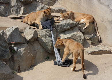 Տեղի գազանանոցի տնօրինությունը դիզայներներին թույլատրել է արջերի, վագրերի ու առյուծների վանդակ նոր խաղալիքներ` ավտոմեքենաների ջինսով փաթաթված անվադողեր գցել :