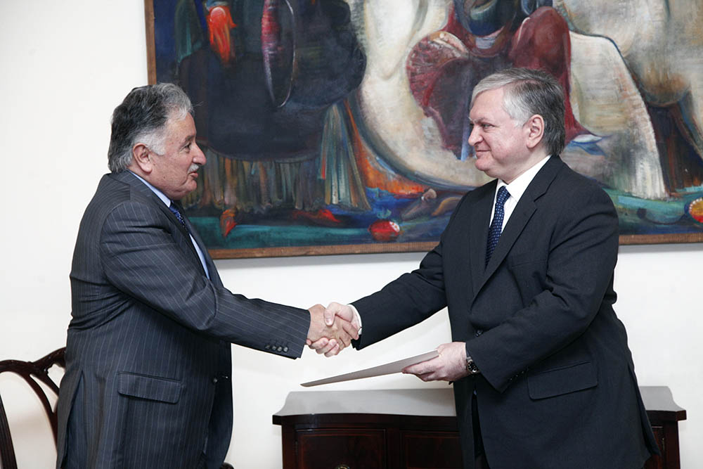 Իրաքի նորանշանակ դեսպանը հավատարմագրերի պատճենը հանձնեց Հայաստանի արտգործնախարարին June 20, 2013 14:40 Հունիսի 20-ին ՀՀ ԱԳ նախարար Էդվարդ Նալբանդյանն ընդունեց Իրաքի հանրապետության նորանշանակ դեսպան Ղազի Տահեր Խալեդին` հավատարմագրերի պատճենի հանձնման կապակցությամբ: Շնորհավորելով դեսպանին նշանակման առթի ...