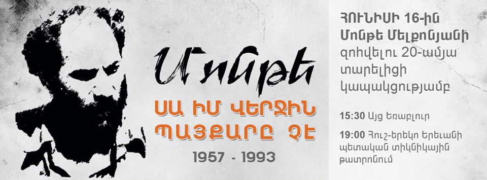 Մոնթեին նվիրված հուշ-երեկո «Սա իմ վերջին պայքարը չէ» June 15, 2013 11:19 2013 թվականի հունիսի 12-ին լրացավ հայ ազգային հերոս Մոնթե Մելքոնյանի զոհվելու 20-ամյա տարելիցը: Այն առիթ է ընձեռում ևս մեկ անգամ հիշելու Մոնթեի կյանքն ու գործունեությունը, խորությամբ ծանոթանալու նրա գ ...