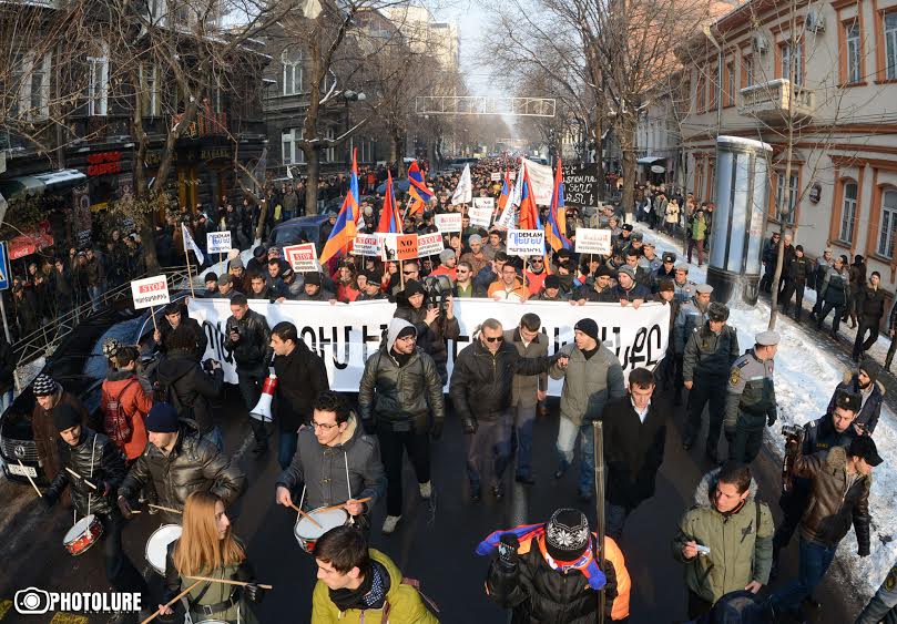 Բողոքի մեծ երթ` ընդդեմ կենսաթոշակային պարտադիր վճարումների. տեսանյութ,լուսանկարներ November 15, 2013 13:30 «Ընդդեմ կենսաթոշակային պարտադիր վճարումների» նախաձեռնությունը քիչ առաջ բողոքի երթ սկսեց, որին մասնակցում է մի քանի հարյուր քաղաքացի: Երթը մեկնարկեց Ազգային ժողովի մոտից և շարունակվեց դեպի Հանրապետական ...