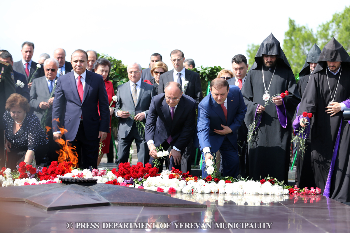 Հարգանքի տուրք՝ Հայրենական մեծ պատերազմի հերոսների հիշատակին May 9, 2014 12:34 Հայրենական մեծ պատերազմում տարած հաղթանակի 69-րդ տարեդարձի կապակցությամբ, ավանդույթի համաձայն, ՀՀ վարչապետ Հովիկ Աբրահամյանը, Երևանի քաղաքապետ Տարոն Մարգարյանը, ՀՀ պաշտպանության նախարար Սեյրան Օհանյան ...