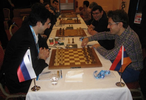 Շախմատի աշխարհի տղամարդկանց թիմային առաջնություն` Հայաստան-Ռուսաստան` 2:2 November 26, 2013 23:22 Անթալիայում մեկնարկած շախմատի տղամարդկանց աշխարհի թիմային առաջնության առաջին տուրում Հայաստանի և Ռուսաստանի հավաքականների մրցամարտն ավարտվեց ոչ-ոքի` 2:2 հաշվով: Վերջինը պարտիան ավարտեց Վլադիմիր Հակ ...
