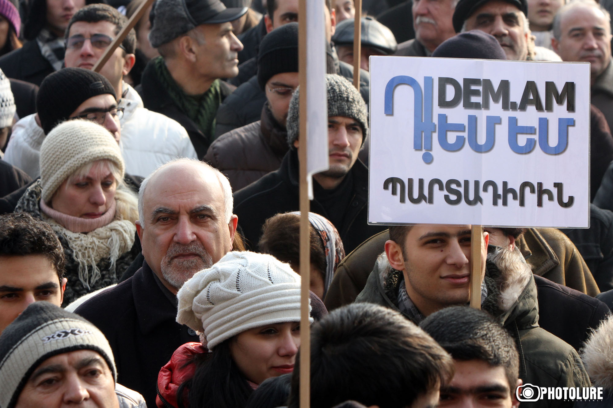 Մենք ենք տերը մեր երկրի.կայացավ կենսաթոշակային պարտադիր կուտակային համակարգի դեմ բողոքի հանրահավաքն ու երթը January 18, 2014 18:53 Այսօր կայացավ կենսաթոշակային պարտադիր կուտակային համակարգի դեմ «Դեմ ենք» շարժման և ԱԺ ընդդիմադիր 4խմբակցությունների կազմակերպած համատեղ բողոքի հանրահավաքն ու երթը: Բողոքի ակցիայի մասնակիցներըպահանջում ...