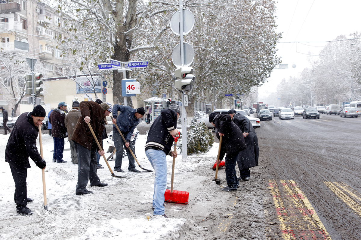 Մայրաքաղաքի ձնամաքրման աշխատանքները շարունակվում են նաև բակերում, մայթերում ու հետիոտնային անցումներում December 12, 2013 17:25 Մայրաքաղաքում դեկտեմբերի 11-ի լույս 12-ի ողջ գիշերվա ընթացքում ծավալված ձյան մաքրման աշխատանքները լուսաբացին մեծ թափով շարունակվել են բակերում, բազմաբնակարան շենքերի շքամուտքերին հարակից աստիճանավանդա ...